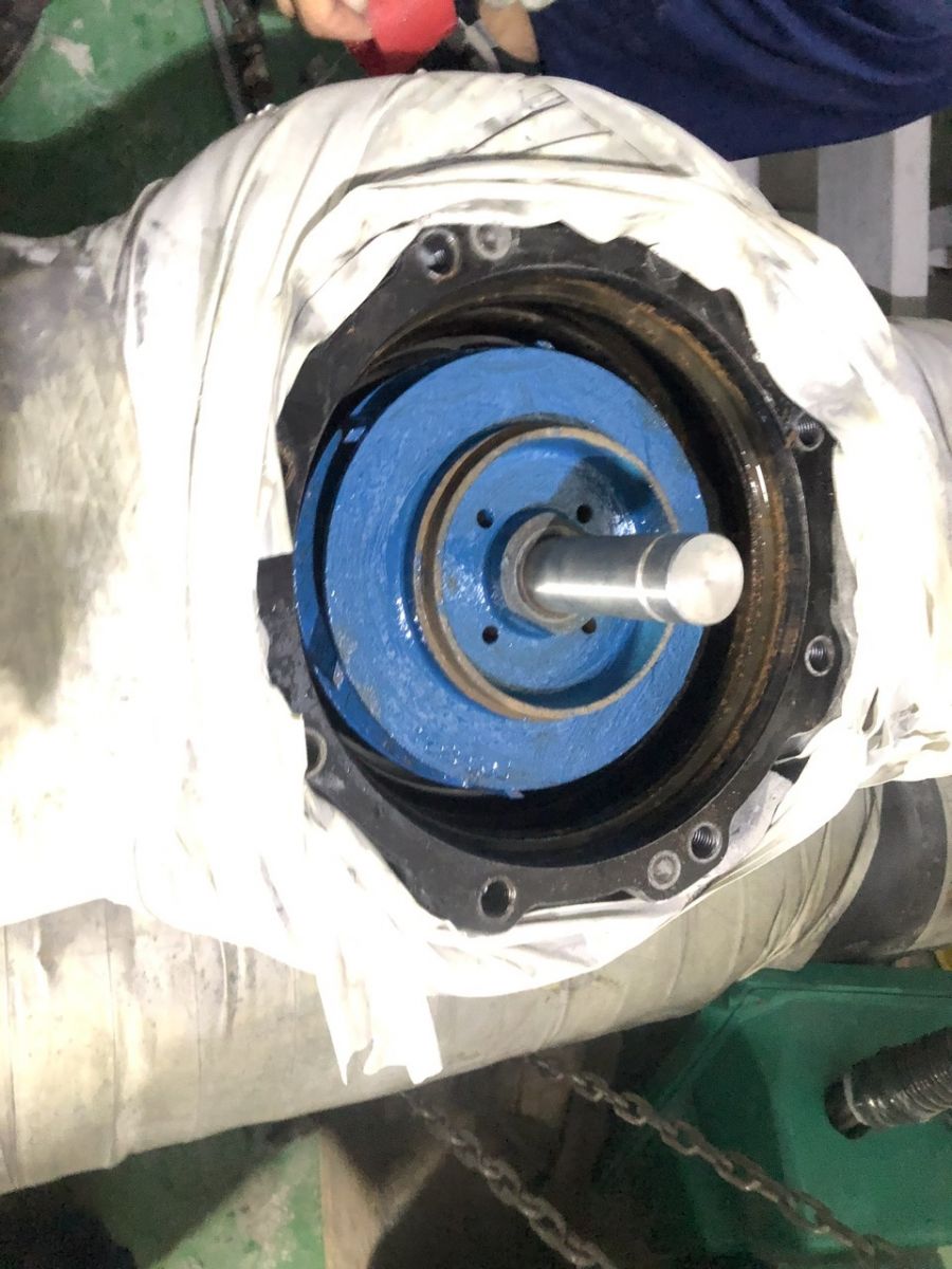 Gia công phục hồi trục, cân bằng động cánh bơm nếu cần.